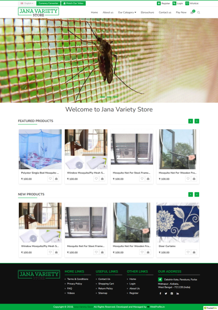 “Jana Variety Store” is a company based in Kolkata that specializes in delivering high-quality mosquito nets, including Cotton Single Bed Mosquito Net, Polyester Single Bed Mosquito Net, Printed Mosquito Net, Mosquito Net for Wooden Framed Windows, and more. Webprofits helped Jana Variety Store to establish its digital presence by creating a website with mobile responsiveness and e-commerce features, which made it easier for customers to purchase products online.